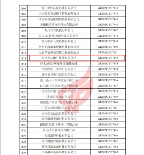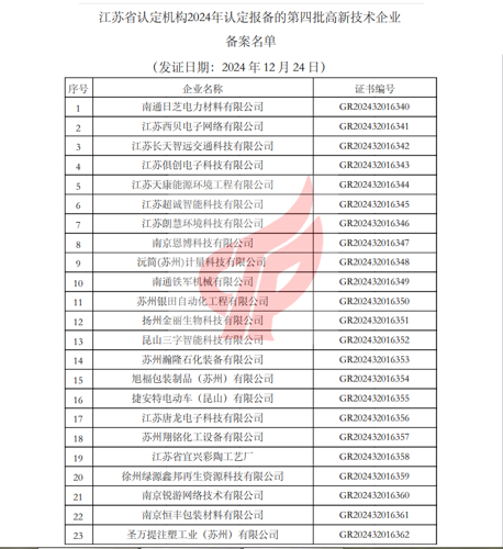 2025年1月14日,高新技術(shù)企業(yè)認(rèn)定管理工作網(wǎng)發(fā)布了《江蘇省認(rèn)定機(jī)構(gòu)2024年認(rèn)定報(bào)備的第四批高新技術(shù)企業(yè)進(jìn)行備案的公告》,集團(tuán)公司2024年高新技術(shù)企業(yè)認(rèn)定順利通過(guò)備案。